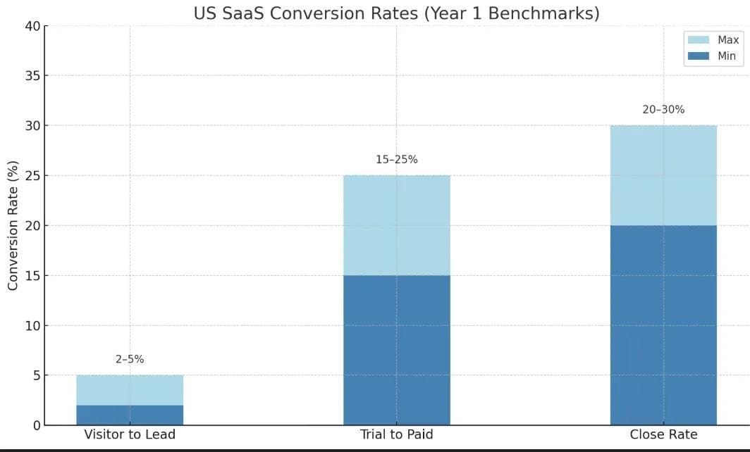 Only ~33% of SaaS companies 10% convert at 15–25%, about meet or exceed these benchmarks. The top 5x the average.