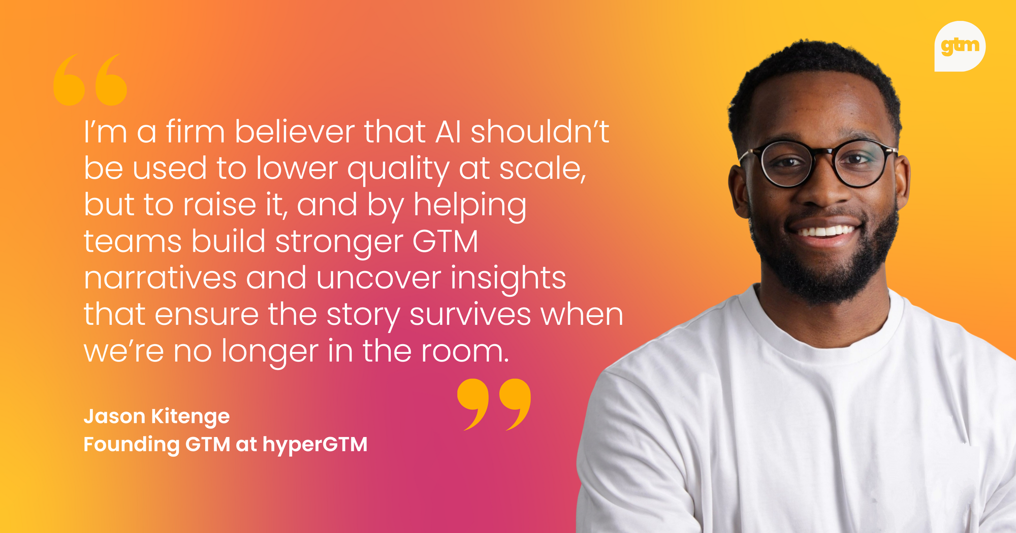 I’m a firm believer that AI shouldn’t be used to lower quality at scale, but to raise it, and by helping teams build stronger GTM narratives and uncover insights that ensure the story survives when we’re no longer in the room.